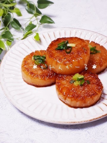 まず作りたいのは、照り焼き味です。ジューシーな大根に甘辛味がマッチしておいしいです。チーズをはさめばマイルドな味わいに。ポン酢であっさり仕上げるのもおすすめです。