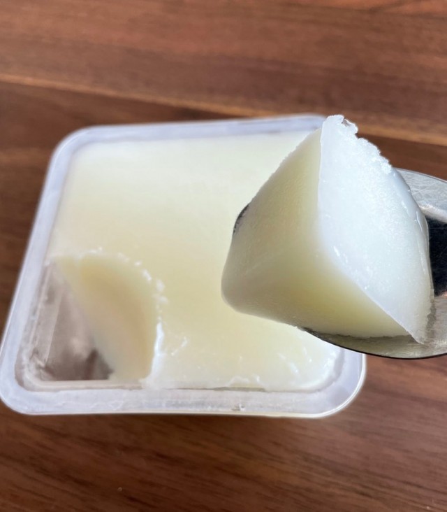 室温で10分ほど置くとだんだんシャリシャリッとした部分となめらかな部分が出てきました。これはこれでいろんな食感を楽しめて、私的にはアリです。