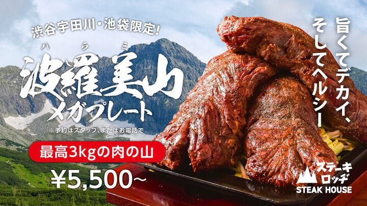 からの記事と詳細 ( 『ステーキロッヂ』渋谷宇田川店/池袋店限定 最高3kgのハラミメガ盛りメニュー「波羅美山メガプレート」4/12(火)から期間限定で登場 - PR TIMES )