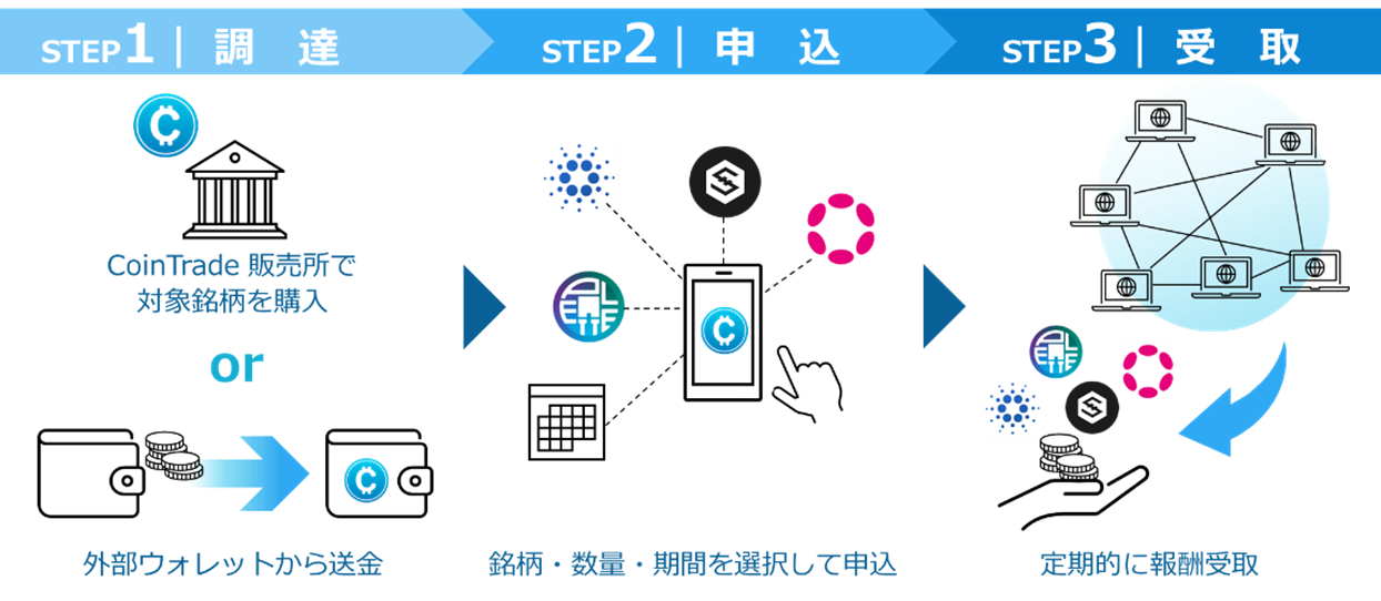 当社はCoinTradeStake(コイントレードステーク)を「次世代の資産運用」と位置付け、今後も対象銘柄の拡大や、利便性の追求などサービス拡大に努めてまいります。到来するWeb3.0時代のインフラストラクチャーとなるブロックチェーン維持への貢献(=ステーキング)を行うことで誰でも身近にWeb3.0へ参加が可能となるサービスのリリースを予定しております。