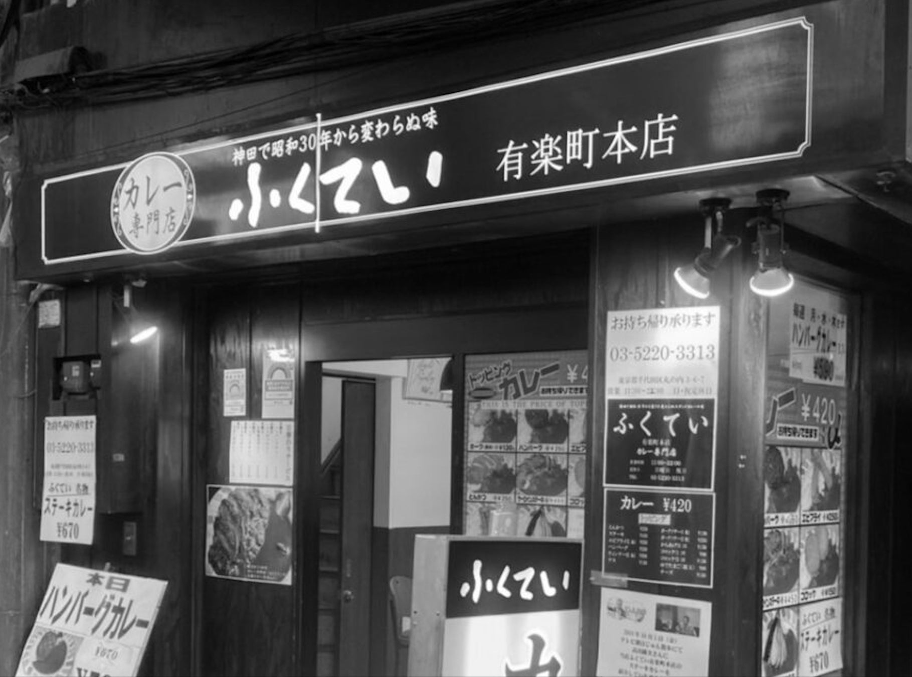 平成22年に神田駅の大規模修繕により、有楽町に移転しカレー専門店「ふくてい」として再出発しました。