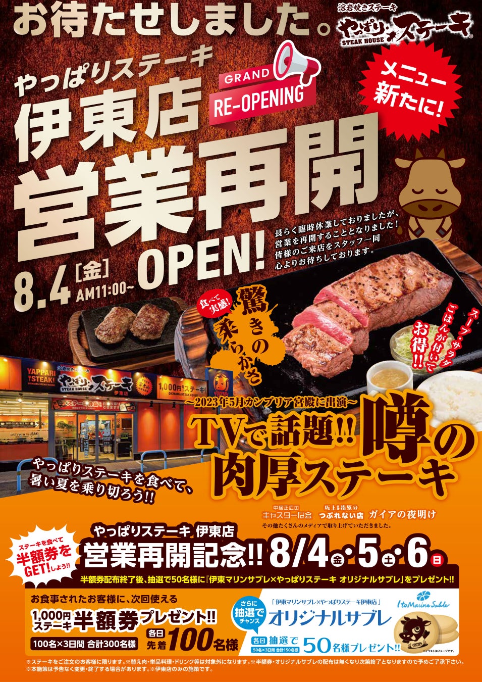 営業再開を記念してやっぱりステーキ伊東店限定で