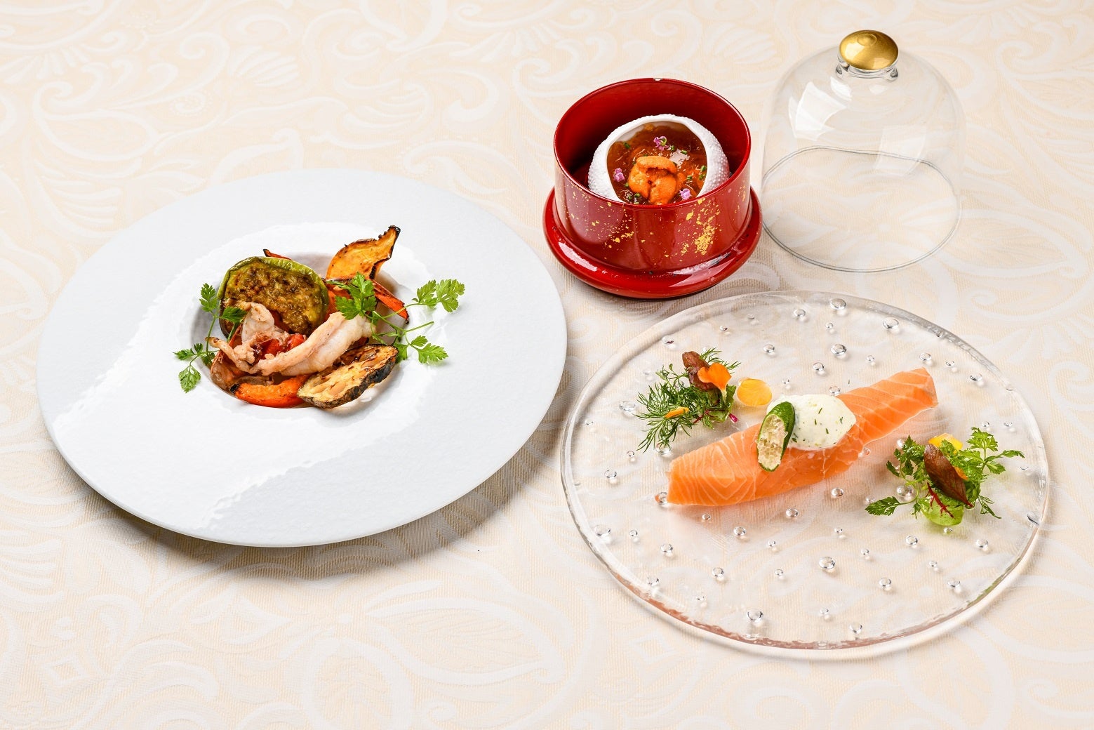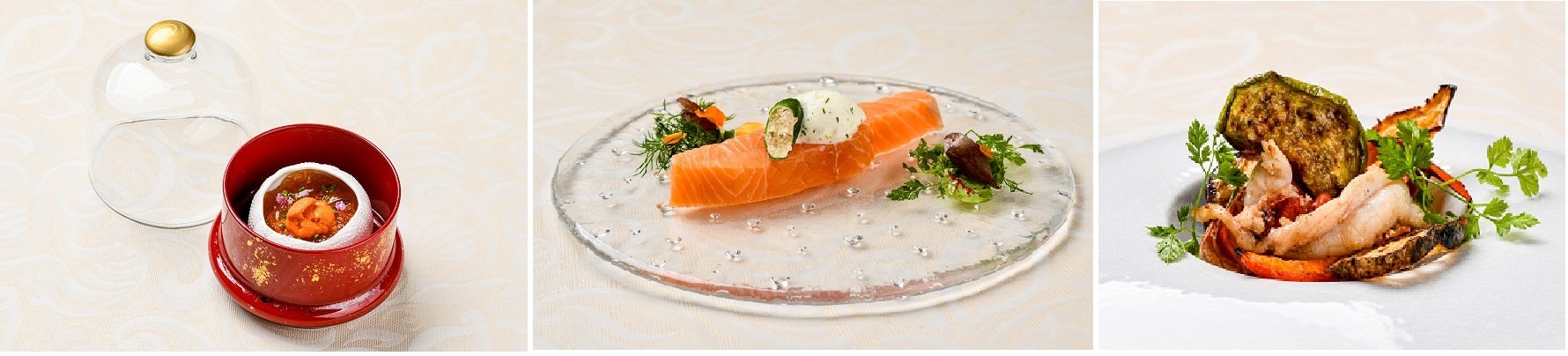 旬の食材をふんだんに使用したその時にしか味わえないコース仕立てとなっており、今回は夏から秋にかけての食材を中心に揃えておりカボチャの滑らかなムース仕立てや自家製スモークサーモン、じゅんさい、旬の野菜の炉窯炭火焼きなど旬の味覚を満喫できます。