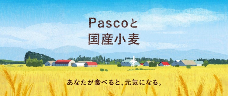 ▽「Pascoと国産小麦」サイトでは、企業としての取り組み、国産小麦に関わる小麦生産者やお客さまの声、Pascoのメッセージをご覧いただけます。